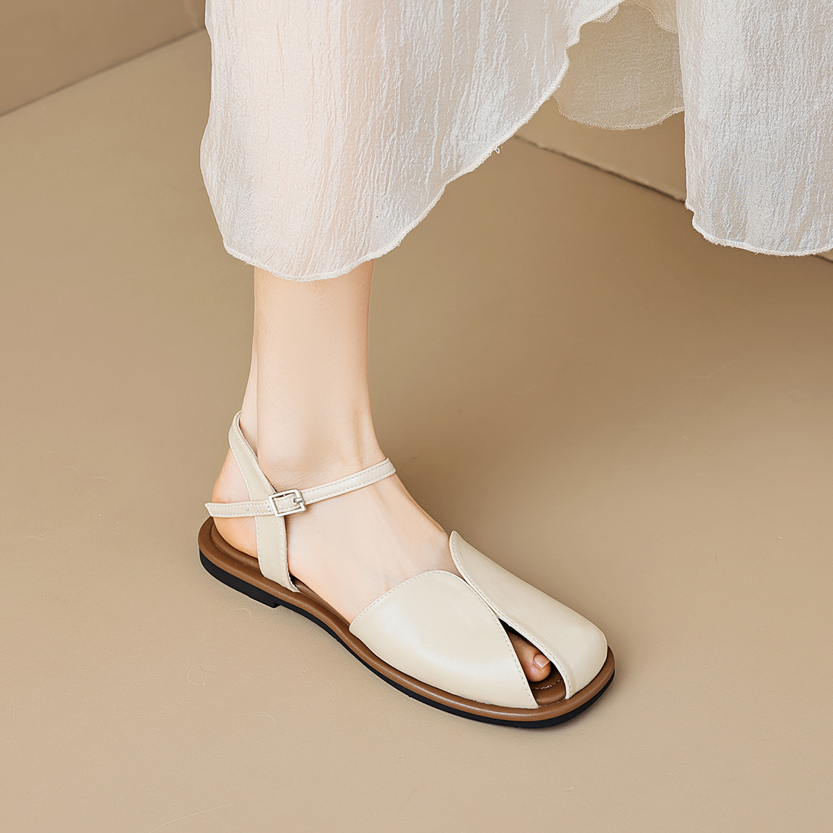 SHOP NOWWeiwei Girl 5-5 French Flat Toe Sandals Women's Summer Outer Wear Casual Roman Shoes with Skirt