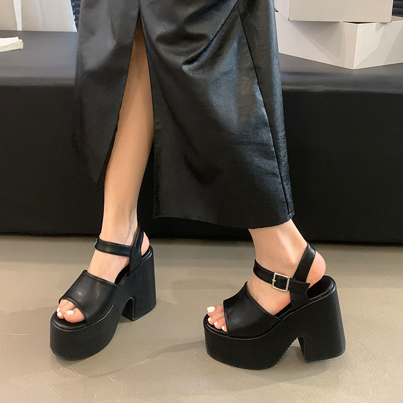 12cm Super High Heel Waterproof Platform Fish Mouth Women's Summer plus size 4142 Size Sandals Oumai Korean Style Simple Cool