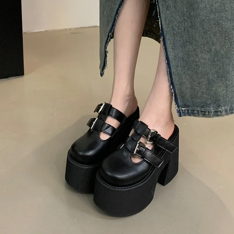 11cm Super High Heel Platform Platform Platform Waterproof Head Rivet Simple Round Head plus size 4142 Women's Sandals